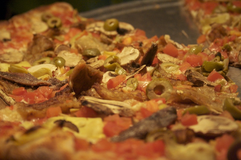 The pizza was good, as usual. Our waitress casually mentioned that she didn’t know if the prize for this year’s hands on an eggplant (HOES!) contest would again be free pizza for a year. My heart stopped cold and my skin went clammy. I asked if she had any inside info or if she was just speculating. She said the latter, and I breathed a sigh of relief. When she brought the check (large pizza with seven toppings, two pints of fireman’s #4, a lemonade and tax: $10.19), I told her that if any Homeslice or elven high counselors (I didn’t say that part) happen to ask her what she thinks I would prefer as a prize for this year’s contest, tell them that I’m pretty happy with the current prize. She laughed, but I was sorta serious.